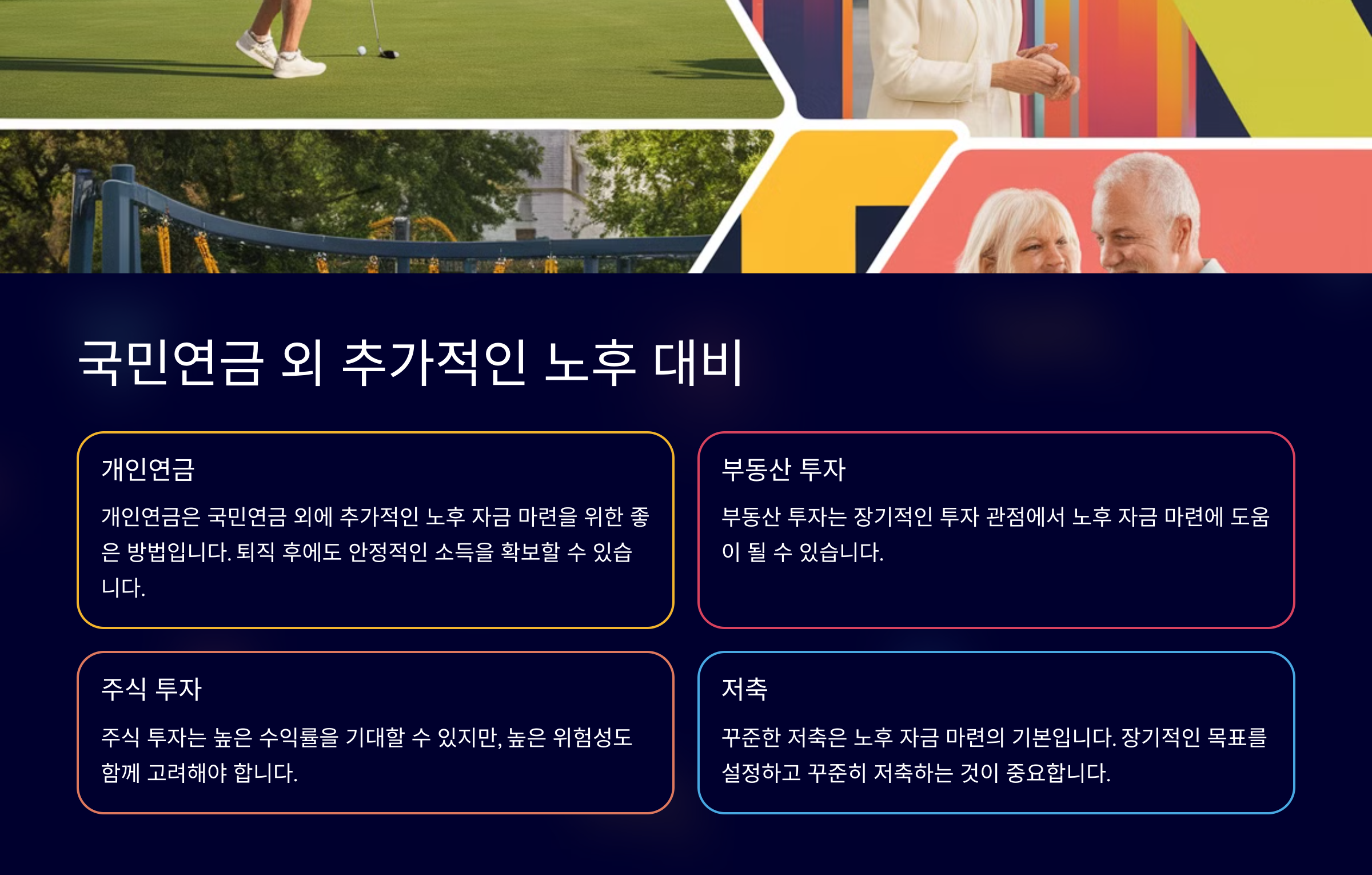 다음 섹션에서는 국민연금 외에도 활용할 수 있는 다양한 노후 대비 방법을 살펴볼게요.