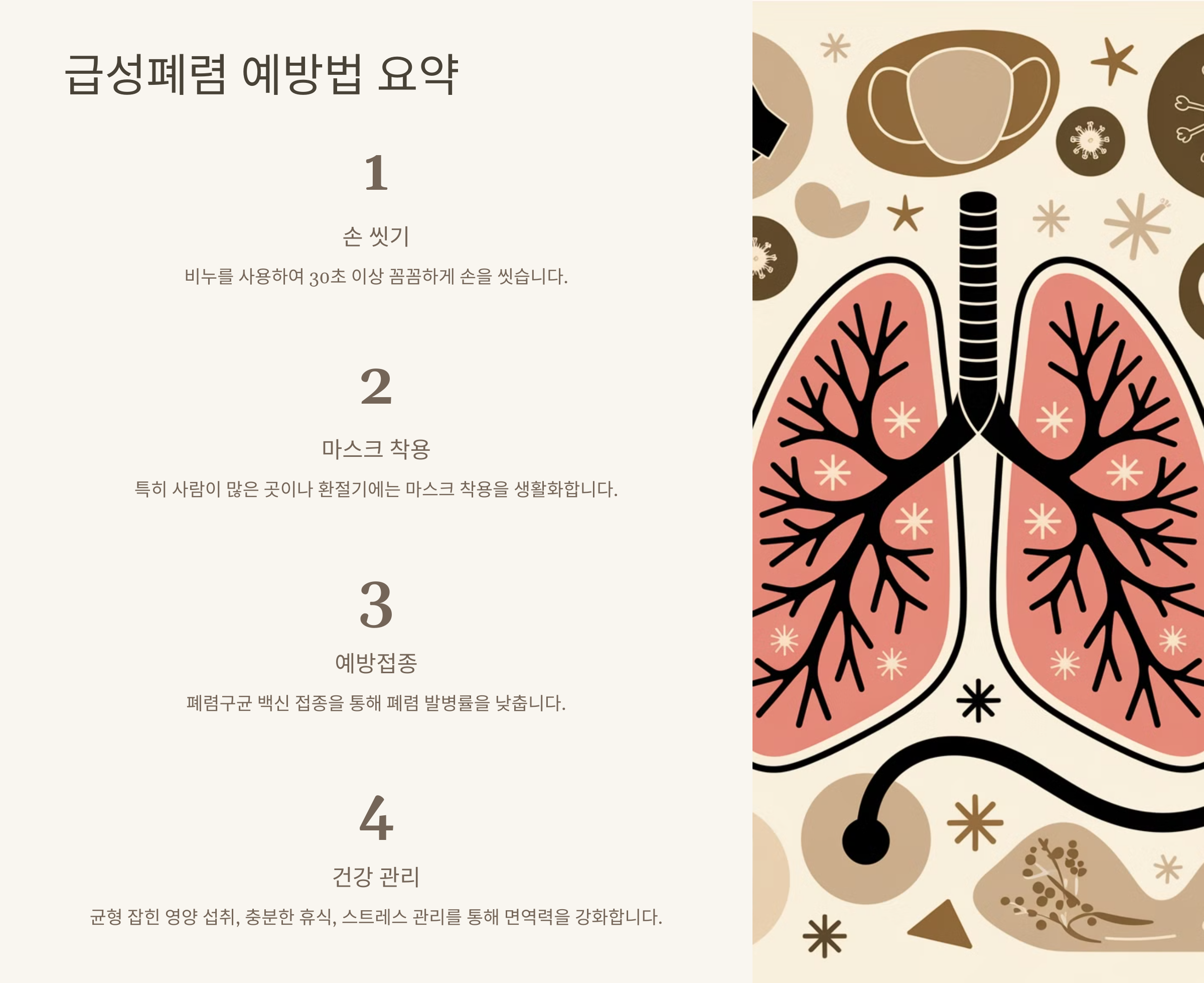 급성폐렴을 예방하려면 다음과 같은 방법을 실천하는 것이 중요해요: