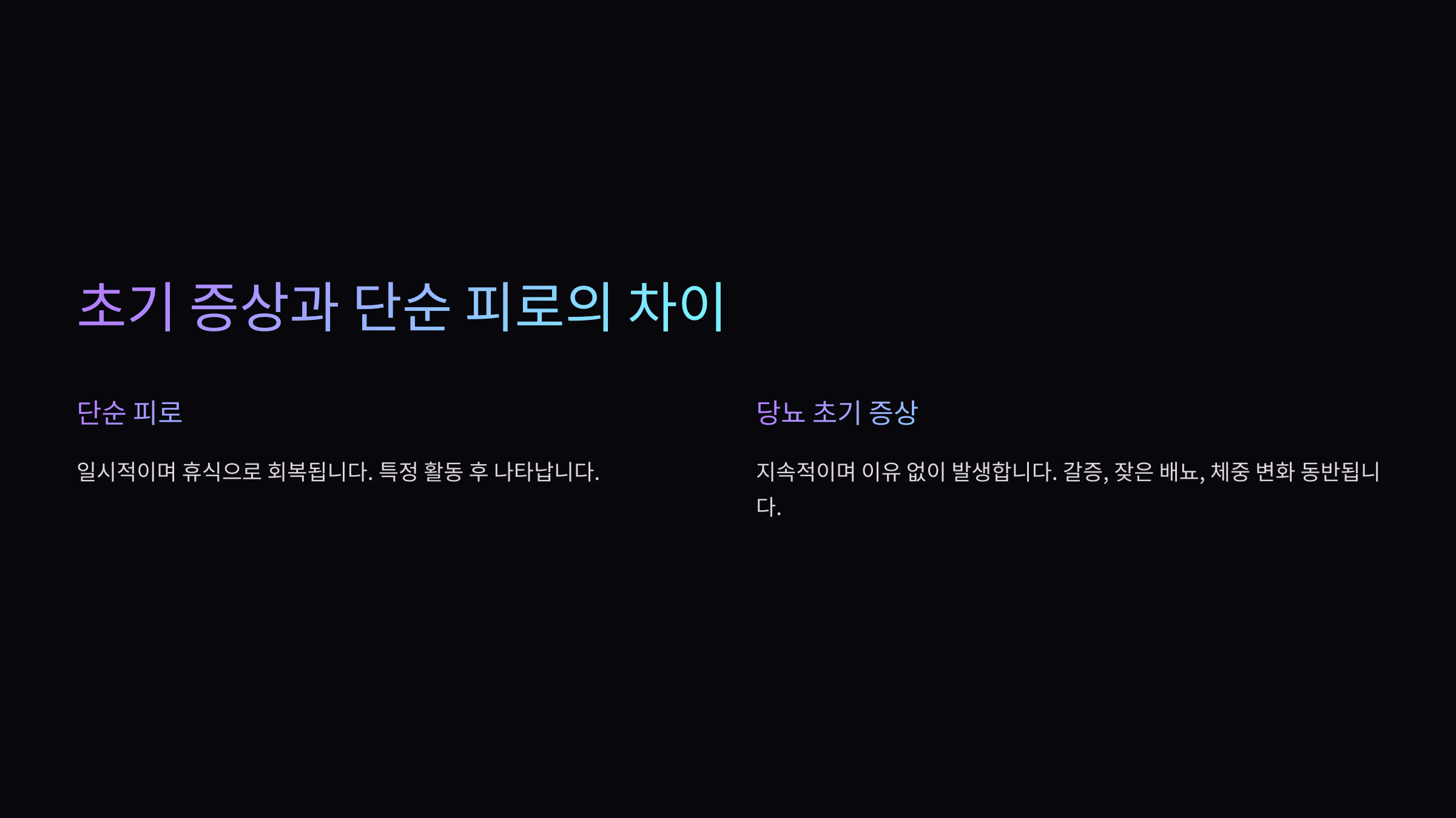 | 구분 | 일반 피로 | 당뇨병 초기 피로 |