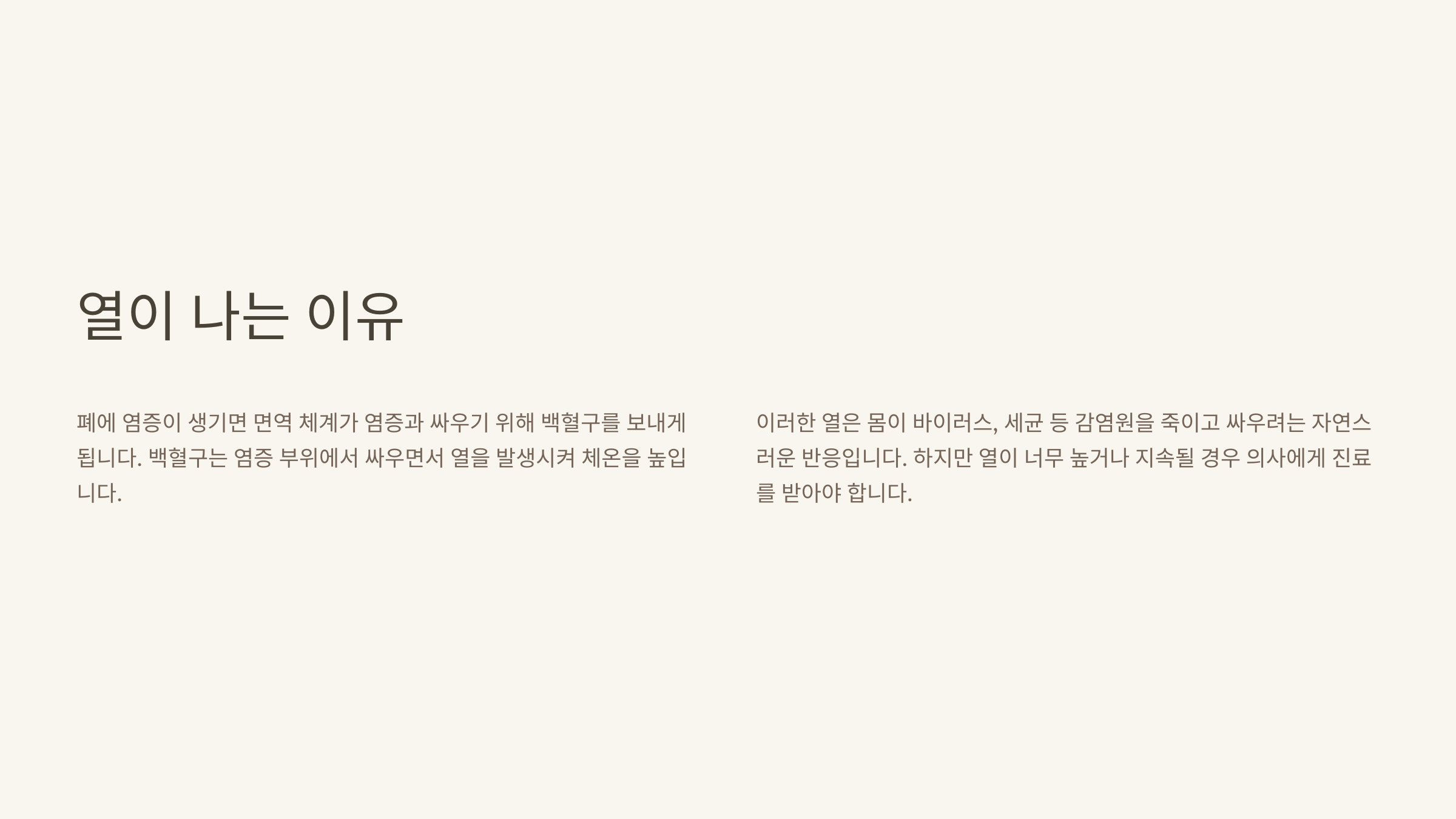 | 수면 | 잠을 자면 회복됨 | 잠을 자도 계속 피곤함 |