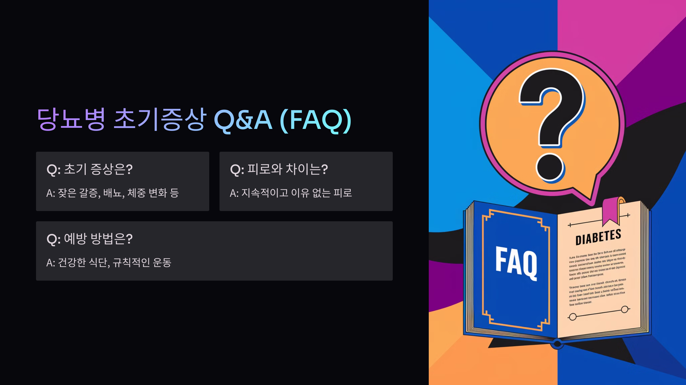 이제 마지막으로, 당뇨병 초기 증상과 관련된 자주 묻는 질문(FAQ)을 확인해볼게요!