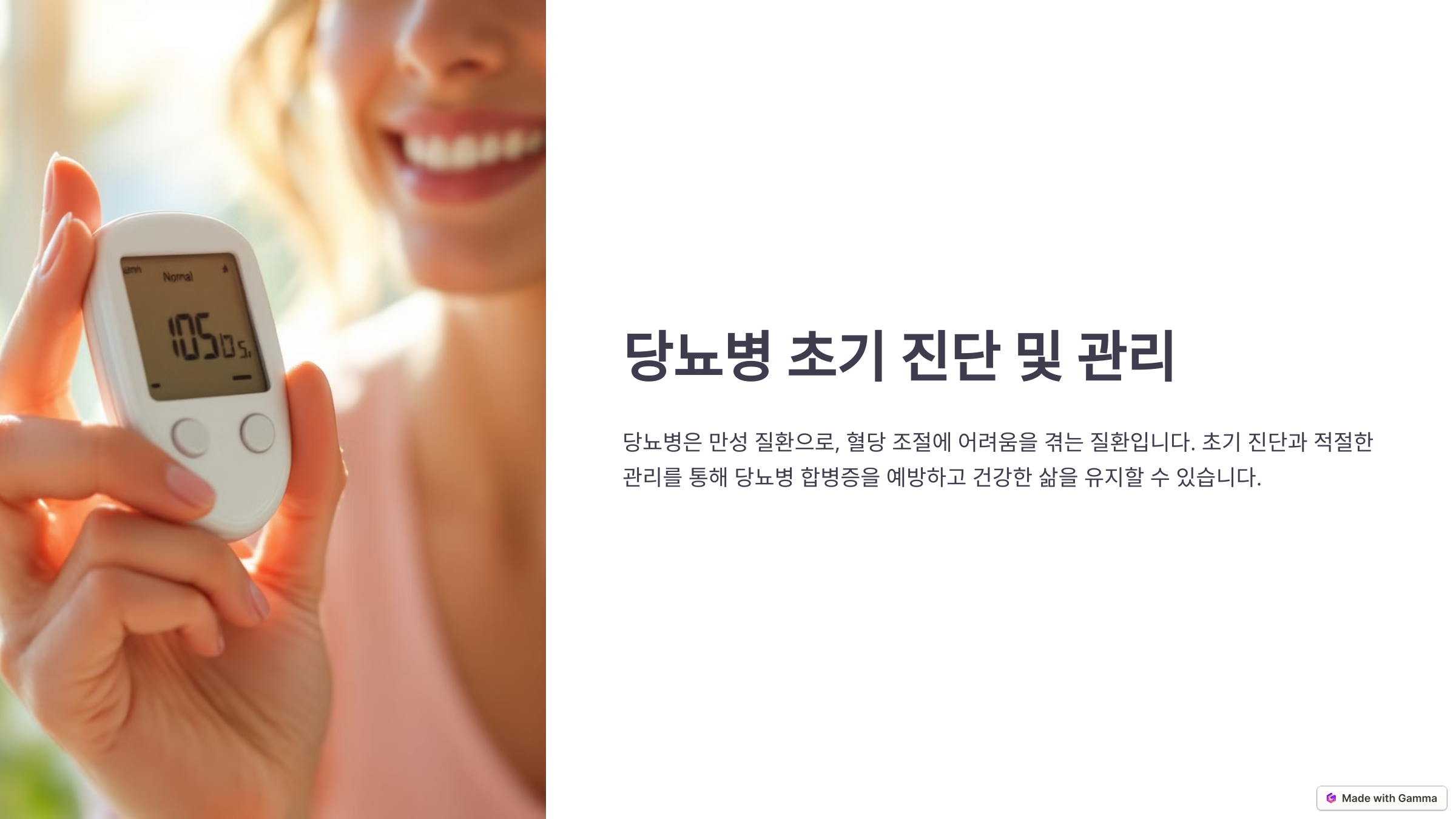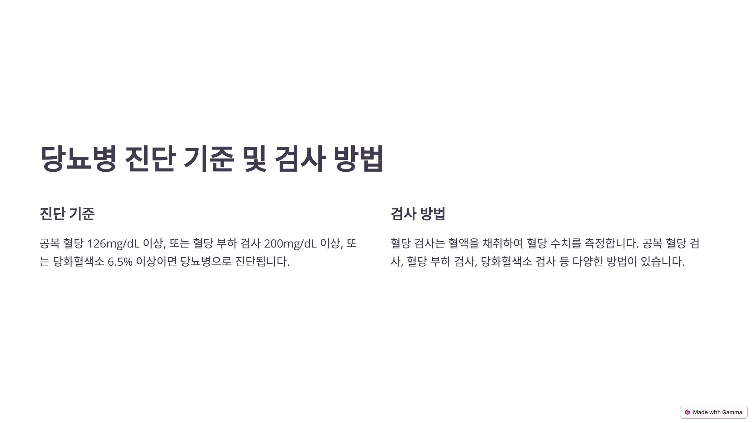 ✅ 공복 혈당 검사: 8시간 이상 공복 후 측정하며, 100~125mg/dL이면 당뇨 전단계로 판단해요.