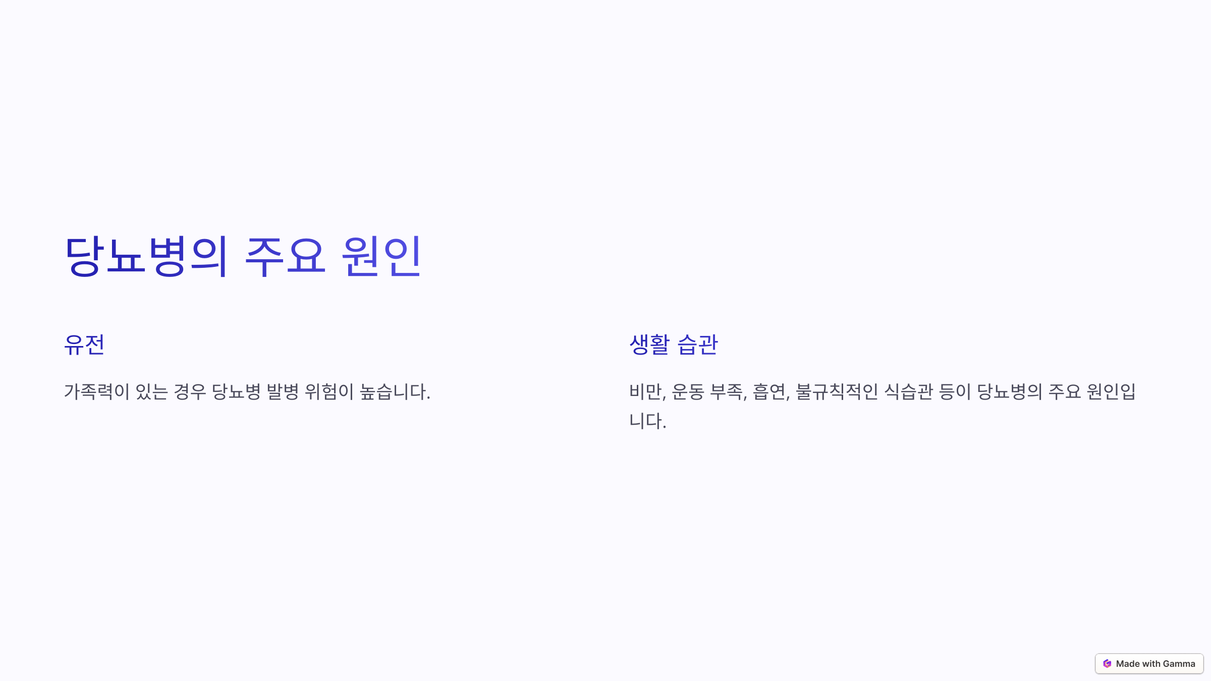 🔹 가족력: 부모나 형제 중 당뇨병 환자가 있다면 유전적으로 위험이 증가할 수 있어요.