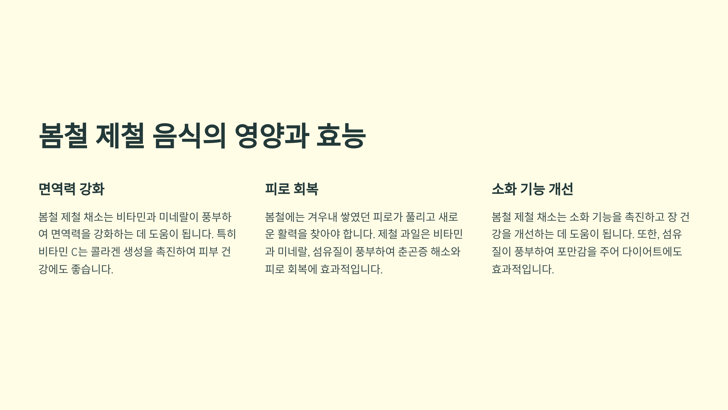 ✔️ 면역력 강화: 다양한 비타민이 함유되어 있어 봄철 환절기 감기 예방에도 좋아요.