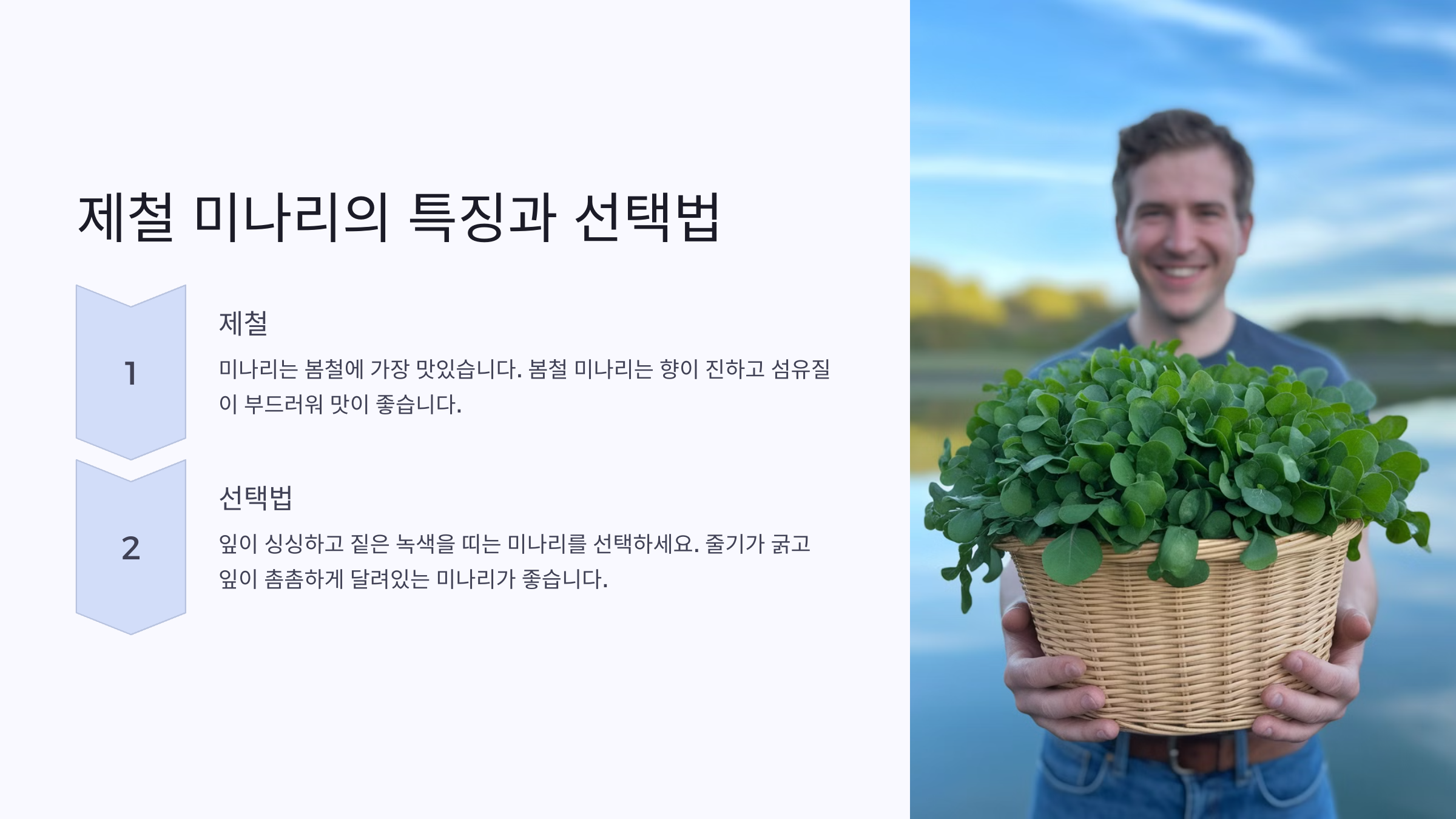 A3. 봄철이 제철이에요. 특히 3~5월에 맛이 가장 좋아요.