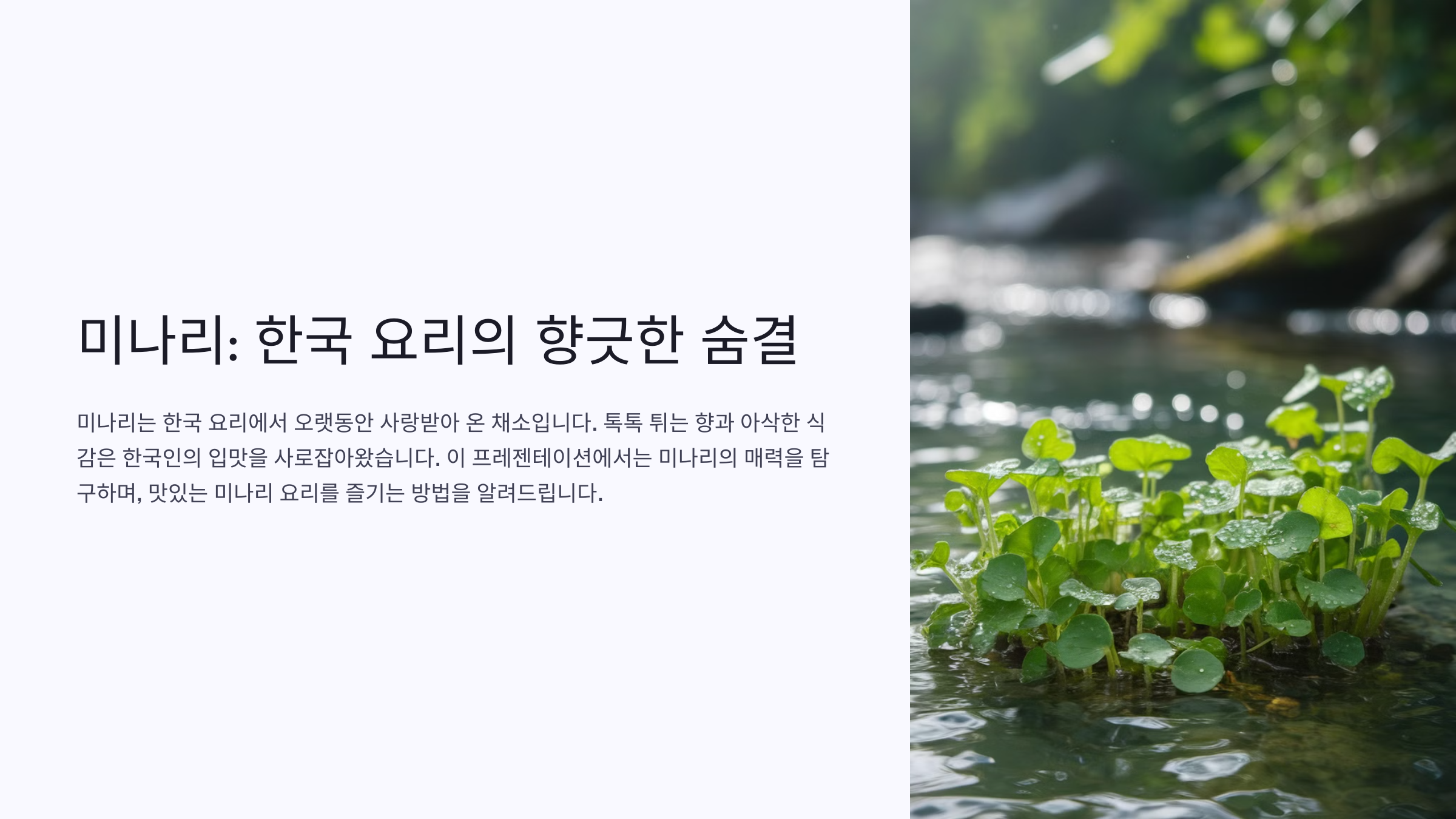 나물밥은 씀바귀를 더욱 부드럽고 고소하게 즐길 수 있는 요리예요. 밥을 지을 때 씀바귀를 함께 넣으면 특유의 향이 가득 퍼져요.