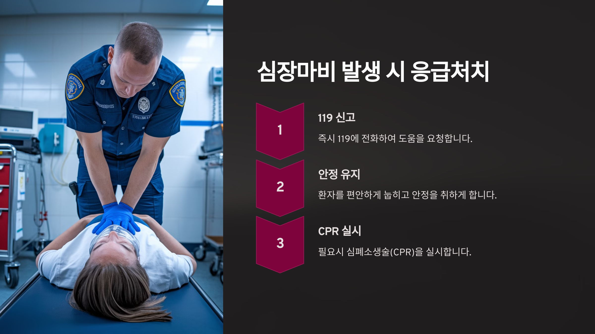 다음 섹션에서는 심장마비 발생 시 응급처치 방법을 알아볼게요! 🚑