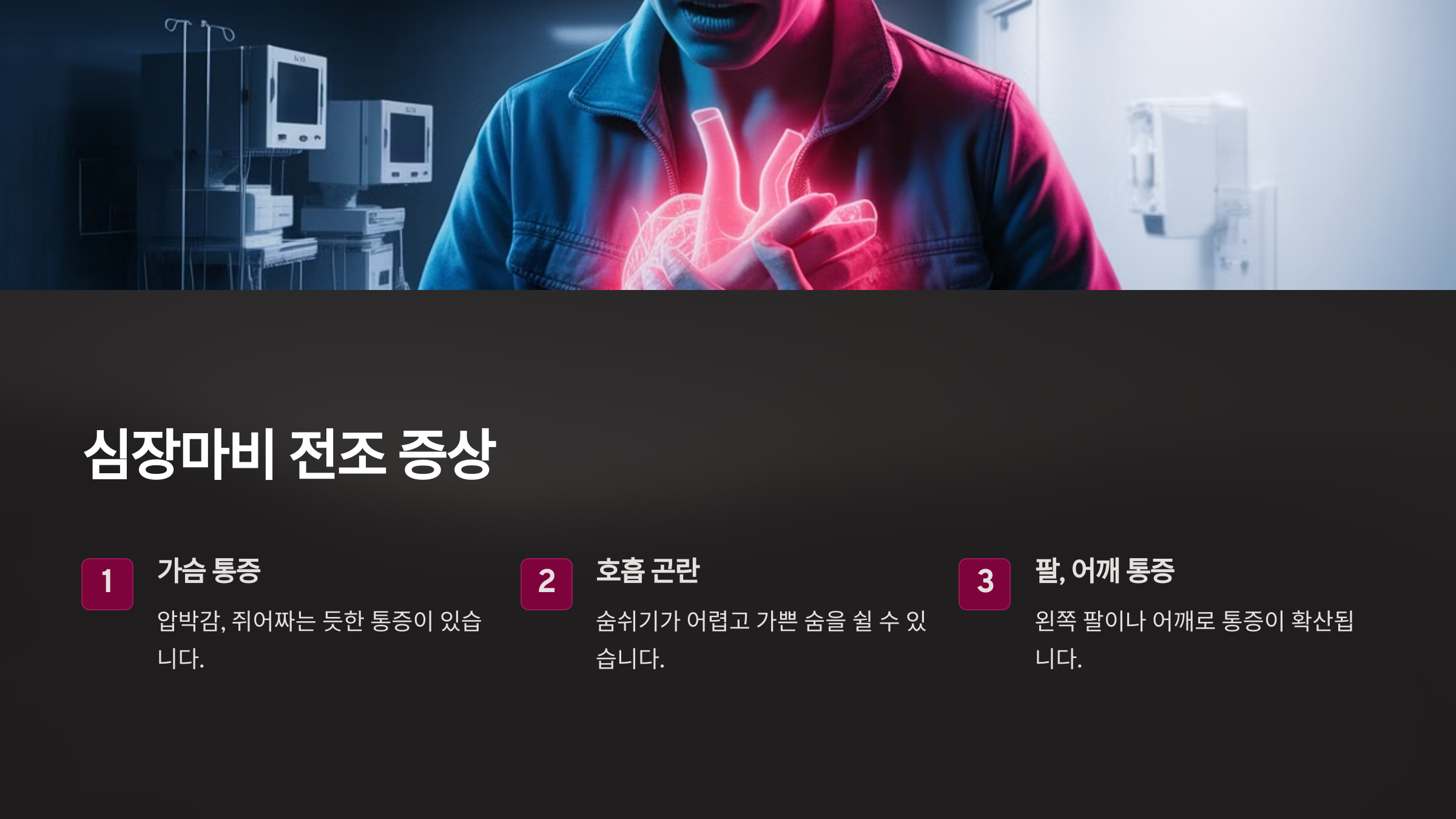 심장마비는 빠른 대처가 생명을 구하는 열쇠예요. 미리 전조 증상을 알고 대처하는 것이 중요해요! 🫀