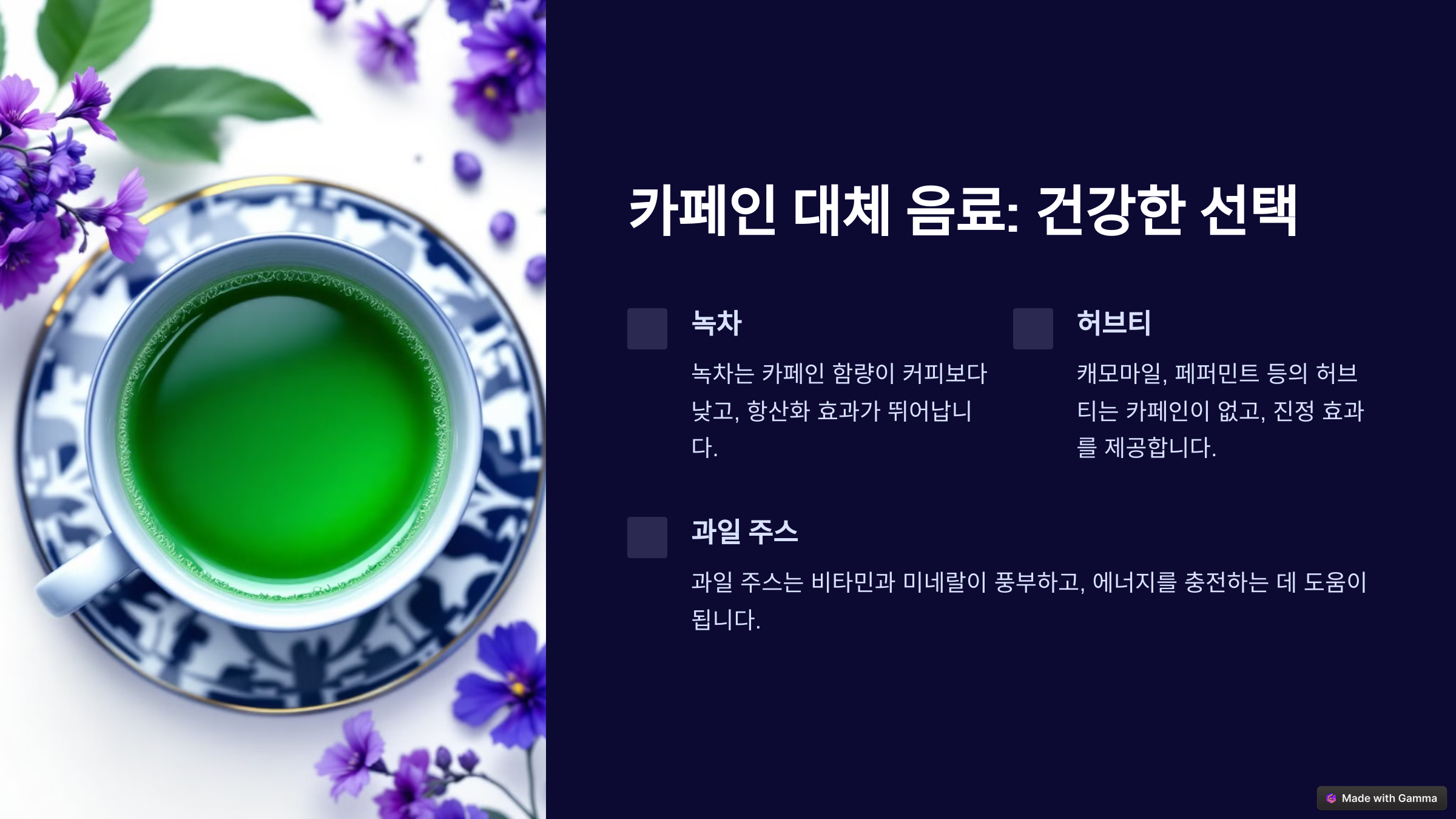 이제 카페인 없이도 건강하고 상쾌한 하루를 보낼 수 있어요! ☺