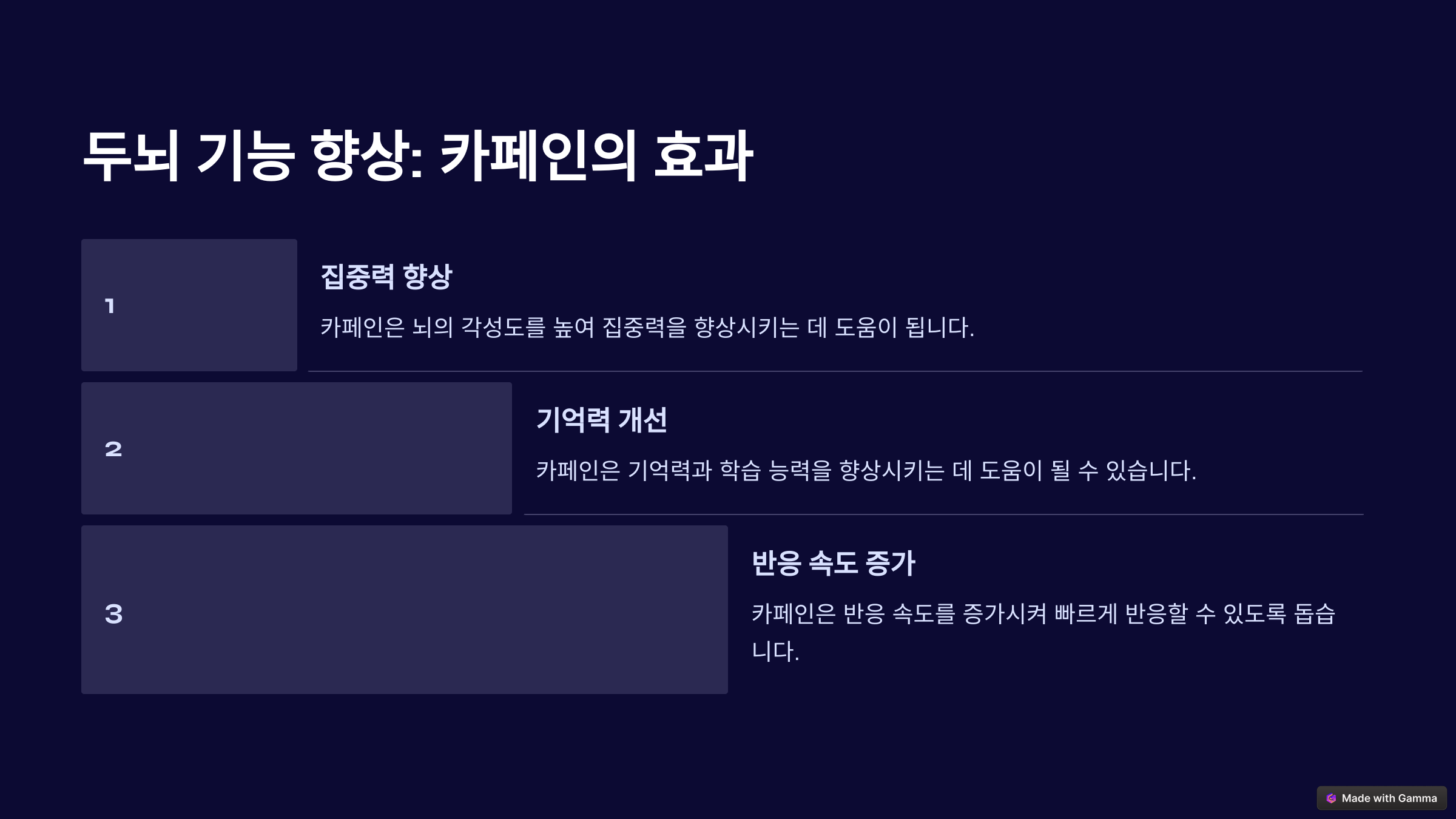 커피는 두뇌 기능을 향상시키는 데 효과적인 음료예요. 카페인은 신경 전달 물질인 도파민과 노르에피네프린의 분비를 증가시켜 집중력과 기억력을 높이는 역할을 해요. 이 덕분에 학생이나 직장인들이 업무 효율을 높이기 위해 커피를 즐겨 마시죠. ☕📚